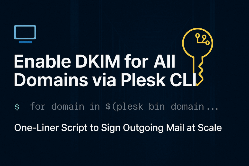 Enabling DKIM for all domains in Plesk boosts email deliverability and protects against spoofing. This article shows how to activate DKIM via CLI using a simple one-liner script, explains how to verify it, and includes tips for syncing DNS records if you're using external nameservers like Cloudflare